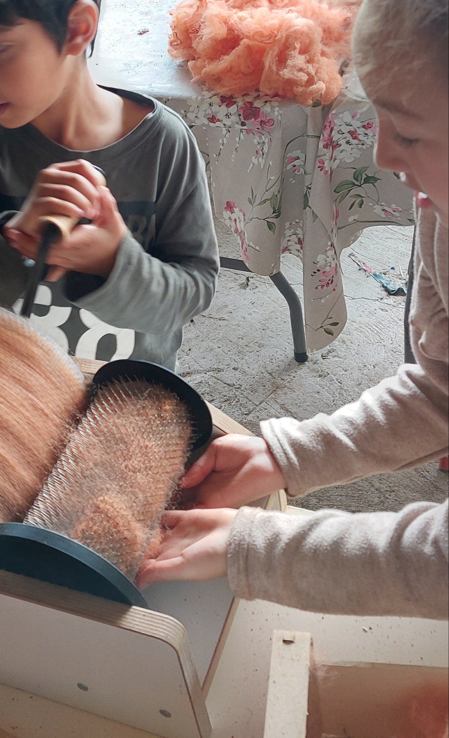 Durant cet atelier, les enfants découvriront le monde fascinant de la laine : depuis la tonte jusqu'au textile. Ils apprendront à transformer la laine pour en faire du fil ou du feutre. Il apprendront également à tisser. A partir de ces apprentissages, ils réaliseront de jolies petits chefs-d'oeuvre.